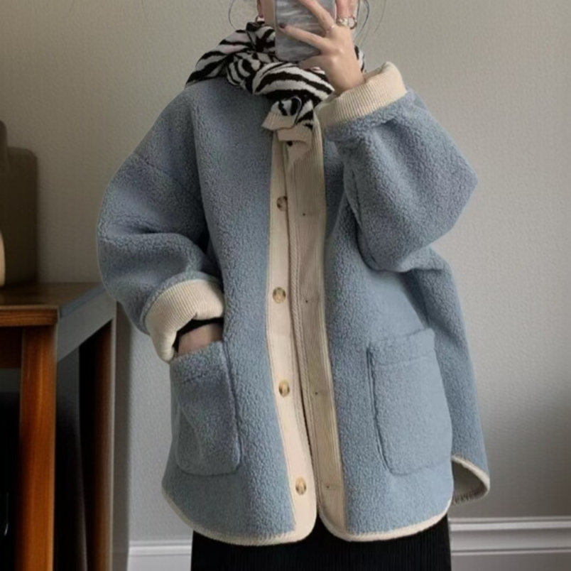 レディース厚手クラッシングカラーラムウールコート カーディガン ルーズミディアムロングコート ヴィンテージラムウールコート